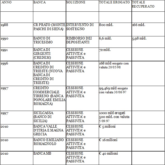 Quante volte è intervenuto il fondo? Raramente: solo nove in venticinque anni, sempre per banche a carattere locale e solo una volta la soluzione è stata il rimborso dei depositanti: negli altri casi si è proceduto alla cessione delle attività e delle passività, in pratica un altro istituto ne ha rilevato le quote.