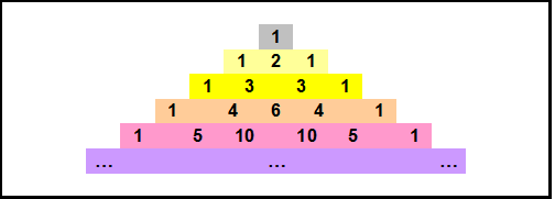 E’ un triangolo semplice, in cui ogni elemento (tranne il primo ovviamente) è sempre uguale alla somma dei due numeri che gli stanno sopra.