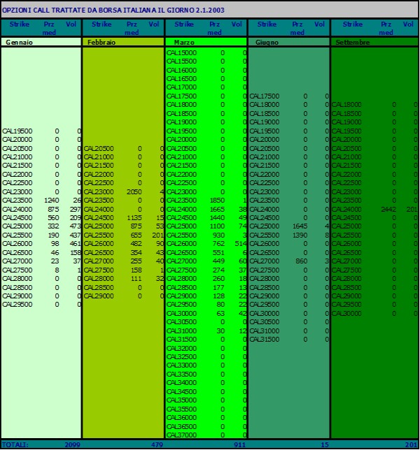 Quest’oggi ci serviremo ancora dei dati del 2003 per conoscere i prezzi e per analizzare il comportamento degli Investitori in Opzioni.