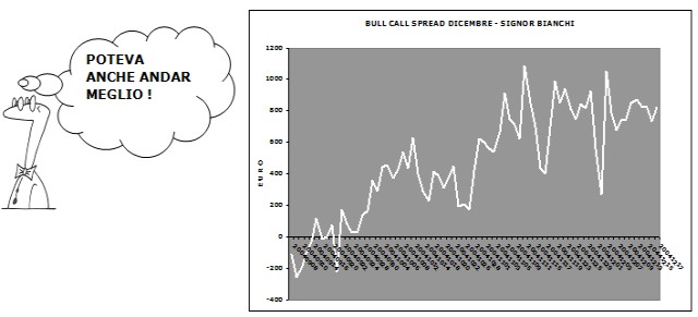 Come abbiamo visto la Bull Call Spread “non contestuale” di Bianchi (stretching sling) è stata costruita un mese dopo l’acquisto dello “zoccolo duro” 27.000.