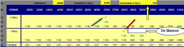 2. Acquisto Call 27000 dell’8 settembre e vendita Call 28500 l’8 ottobre a 670: