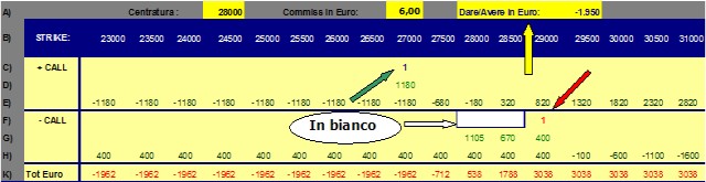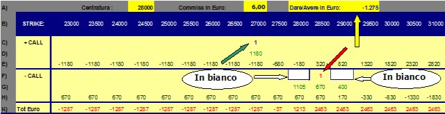 1. Acquisto Call 27000 dell’8 settembre e vendita Call 28000 l’8 ottobre a 1105: