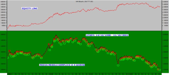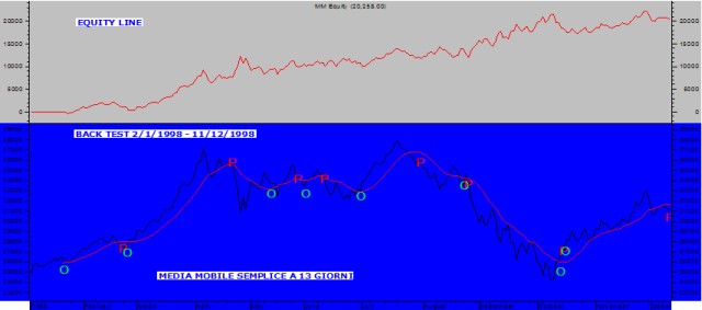 Da quanto ci pare di capire, l’ottimizzazione della Media Mobile Semplice del BACK TEST avviene utilizzando un Dominio a 13 giorni.