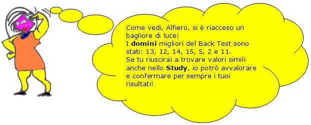 Quando uno o più valori del Dominio di Back Test comparirà anche nello Study, allora potremo statisticamente avere buone probabilità che quel Trading System potrà funzionare anche in futuro.