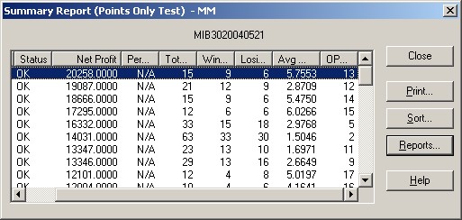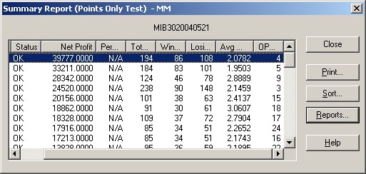 3)     Alfiero ha così creato la formula corrispondente mov(c,10,s) e l’ha sottoposta al System Tester di Metastock per verificarne la validità.