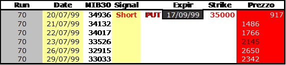 - Si è scelto di eseguire la simulazione col prezzo MEDIO della SECONDA scadenza (17 settembre 1999).