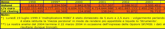 - Il volume di affari sulle MIBO è risultato (dal 1998 al 2003) di circa 4 miliardi di Euro all’anno.