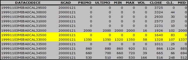 Nella tabella delle MIBO del 18 novembre 1999 possiamo notare le ultime 8 call (da 38500 a 42000) con O.I. uguale a zero.