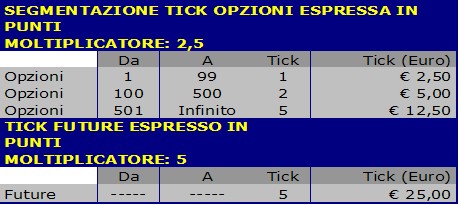 · valori delle Opzioni superiori a 500 avanzano per scatti minimi di 5 punti (es: 520…525)