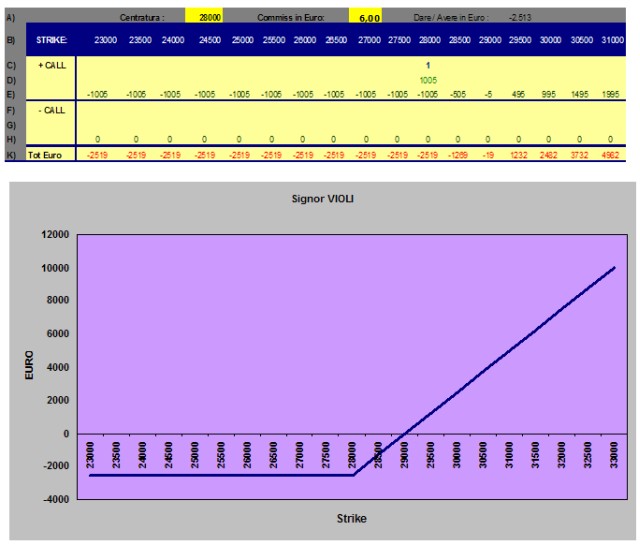 ·         Neri, ipotizzando un rialzo più marcato, si era rivolto allo Strike 30.000 spendendo una somma molto più modesta: 131 € (50 punti più le spese).