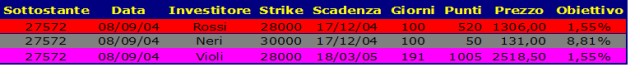 I personaggi del nostro racconto, Mario Rossi e Ottaviano Neri, immaginando un rialzo della Borsa, avevano entrambi deciso di acquistare Call utilizzando la stessa scadenza di dicembre