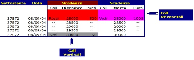 ·         Opzioni verticali       :          per indicare Opzioni con      la stessa scadenza e         diverso strike.