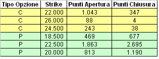 I valori di regolamento sono riportati nella tabella che segue preceduti dai punti di apertura delle posizioni (ricordo che ogni punto indice vale 2,5 €):
