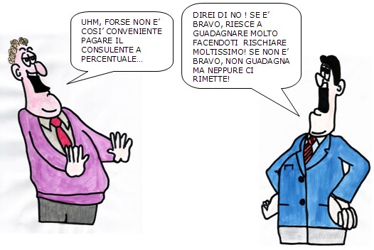 Anche i nostri due amici sono d’accordo che la remunerazione a percentuale, anche se a prima vista pare vantaggiosa, a conti fatti non è per nulla conveniente per il cliente e lo espone a maggiori rischi finanziari.