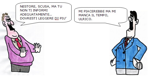 Ulrico dedica sicuramente tempo ad informarsi, ma lo fa in maniera superficiale perché non è un esperto e i settori che lo interessano sono tanti … gli piace il vino – e questo lo sappiamo – e poi? Si interessa di motori, in particolare gli piacciono le macchine sportive; poi è un vero patito di cavalli e si reca al maneggio due volte la settimana; e si interessa di investimenti … perché ha un piccolo capitale a disposizione e vorrebbe investirlo al meglio. Il suo lavoro però è un altro e lo tiene impegnato otto ore al giorno, senza contare gli straordinari che ogni tanto deve fare. Ha degli amici, una casa, una famiglia … insomma il suo tempo è diviso tra tante attività diverse, come lo è per tutti.