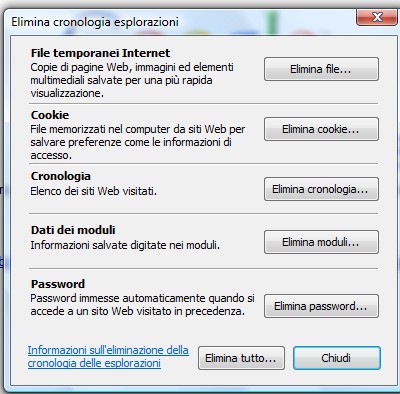 La procedura di eliminazione dei cookie è semplice ed è eseguibile da ogni tipo di browser e con qualunque sistema operativo.