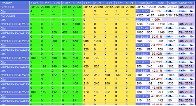 Chi si stesse avvicinando ora al trading on line e alle Piattaforme Tol, può ritornare al contributo di Caranti in cui si spiega in cosa consiste un Book telematico http://www.francescocaranti.com/opzioni/book_telematico