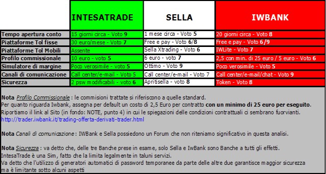 Tra le principali Società italiane che permettono di operare in Opzioni FTSE MIB, nei presenti contributi vengono prese in considerazione solo le seguenti: Banca Sella, Intesa Trade e IWBank.